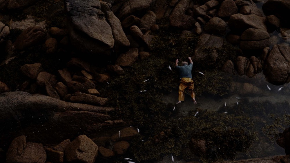 Així en general, el meu primer impuls és explorar nous llenguatges cinematogràfics, després combino amb la temàtica que vull explorar, en aquest cas els mites, i en aquesta combinació emergeix la història. Jo volia explorar el temps arran de les figures mòbils al paisatge, la figura seria la de l’imaginari gallec. I allà la idea seria crear un poble on tothom s’ha quedat paralitzat i després, doncs, explorar què ha succeït. A nivell de llenguatge cinematogràfic, volia explorar la mal·leabilitat de el temps. Són figures que estan immòbils però abstretes, absortes en el seu món interior, és a dir fora de el temps, fora de l’espai. D’altra banda el temps va fluint en la naturalesa, en el paisatge. Llavors crec que per a mi ve el llenguatge, després el tema, i el guió.
